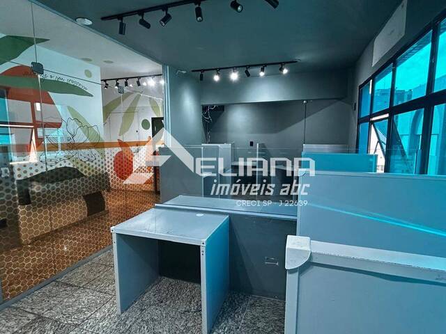 Sala comercial Edifício Labor II - Vila Guiomar com divisórias em vidro, bancadas, compondo 5 salas com cabeamento de rede, copa, 2 banheiros e 2 vagas. Ideal para call center.